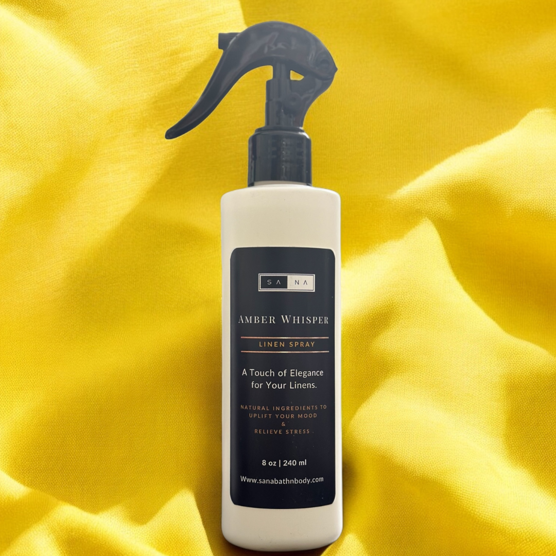 Our Amber Whisper is more than a scent; it's an experience. Designed to gently refresh your linens, it's perfect for bedding, curtains, and other fabrics. The natural, linen-safe formulation ensures your fabrics are treated with care, leaving them lightly perfumed without any residue.